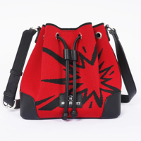 גברת אופנה multway crochet שקית דלי פיצוץ התפוצצות סרוג עם בסיס עור לשימוש יומיומי ולנסיעות